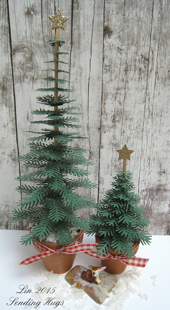 Oh Lin they are gorgeous! I got my die a few days ago and had time to try it today. Well it did take quite a long time due to my skewer being too thick and not having snail glue but seeing your little tree looking so sweet I think I might pinch your idea of only using the small and medium dies and see if I can make one quicker. Love your spool base idea too - you are still as clever and creative as ever! Gorgeous Christmas banner too! xx