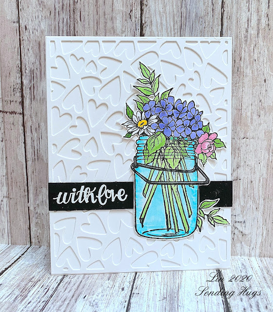After watching Jennifer McGuire's recent post and video with Glimmer Plates, I caved. One of the reasons I decided to go this way was that she showed that some could be used to emboss without any foil involved at all. So when the Flower Pattern glimmer plate arrived before the machine, I decided to give it a try. Embossing folders are one of my favorite supplies, and these plates give a nice deep embossed effect also. Here's my first card.